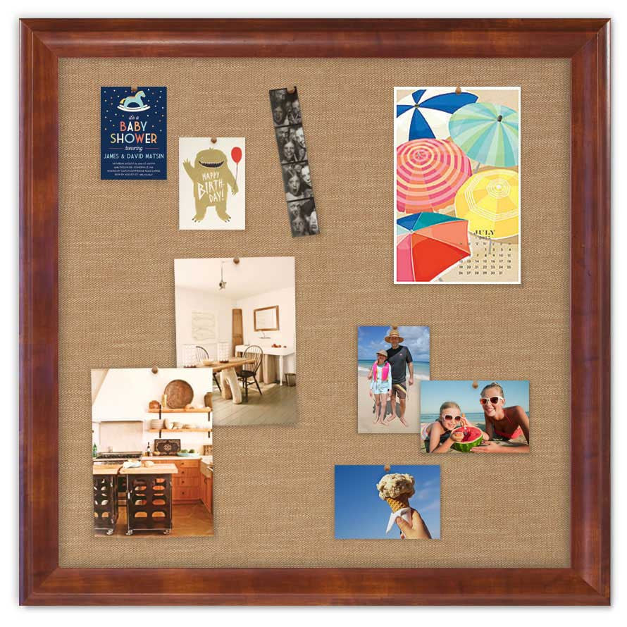 CHOOSE YOUR FRAME & FABRIC STYLE FROM THE FRAME SWATCHES. Our beautiful fabric bulletin boards are built from scratch right here in our New England workshop. Every 36" x 36" framed bulletin board is handcrafted with real wood moulding and gorgeous upholstery fabrics. Use our bulletin boards for home or office as a stylish way to pin photos, artwork, school schedules or as an inspiration board to post creative ideas, pictures and inspirations!